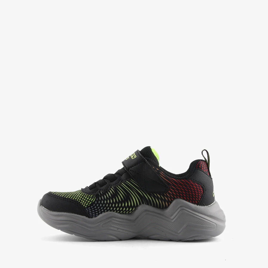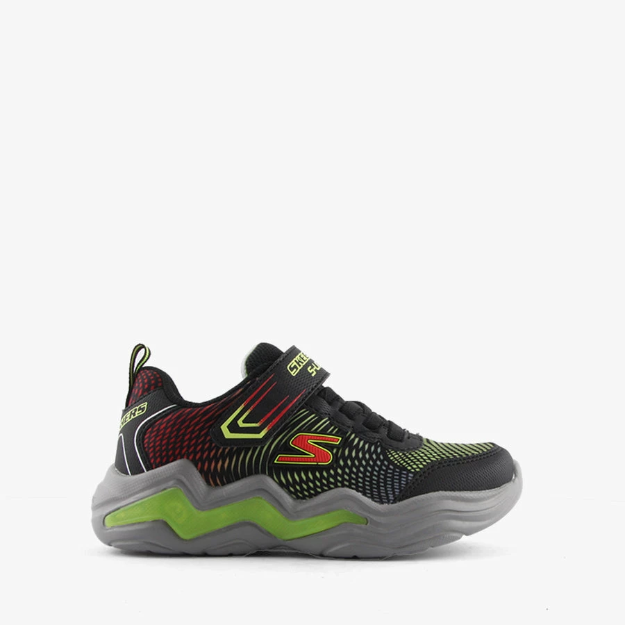 Erupters 1V by Skechers is a kids sneaker that features an elastic bungee lace, velcro strap closure, and vibrant light up sole.