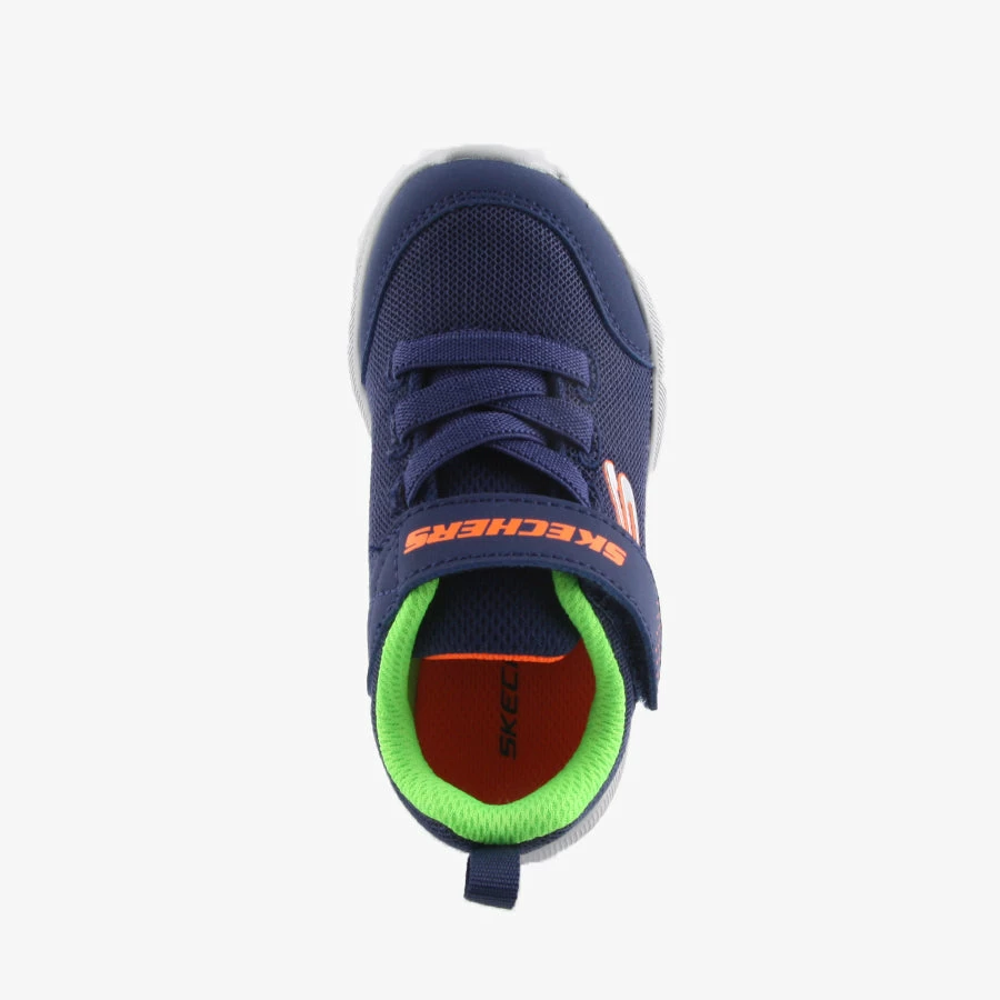 Skech-Stepz Mini Wanderer by Sketchers is an infants sneaker that features an ultra lightweight sole, breathable mesh upper and a velcro strap closure with elastic bungee laces.