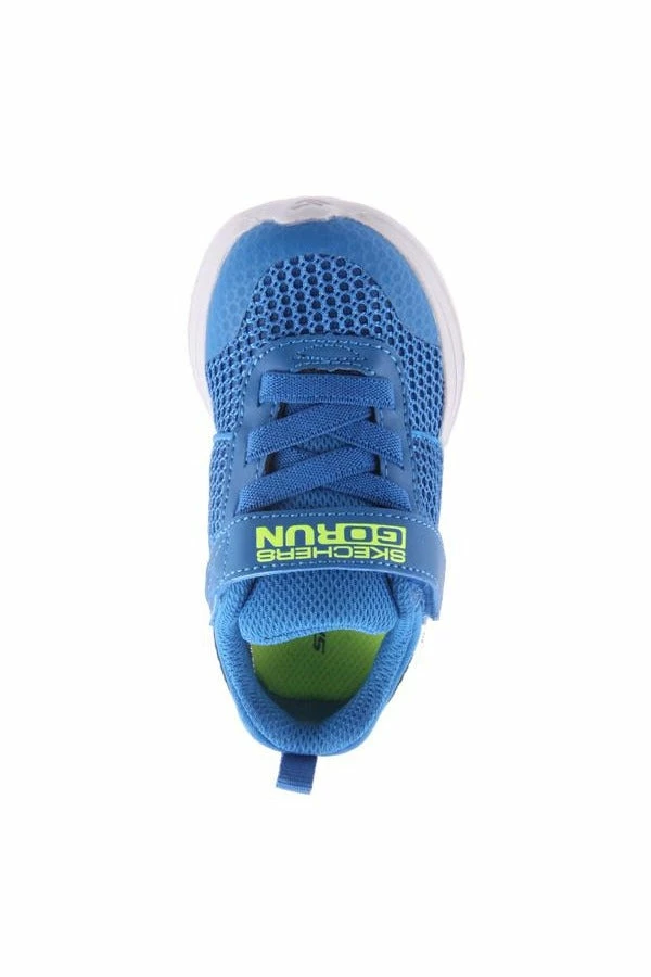 Go Run Fast Tharo by Skechers is an infant’s sneaker featuring a mesh upper with elastic laces and a velcro strap closure on a lightweight non-marking sole.