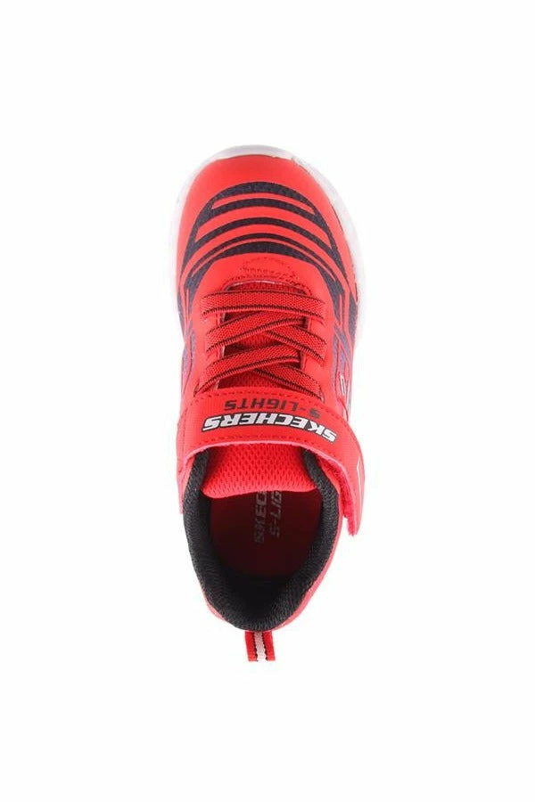 ML- Bozler by Skechers is an infant’s sneaker featuring elastic laces and a velcro strap, finished with a non marking light up sole.