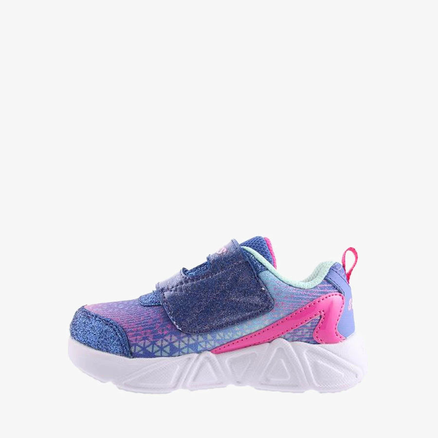 Tri Brights by Skechers is an infant’s sneaker that features a bright light-up sole and wide velcro strap for easy wear.