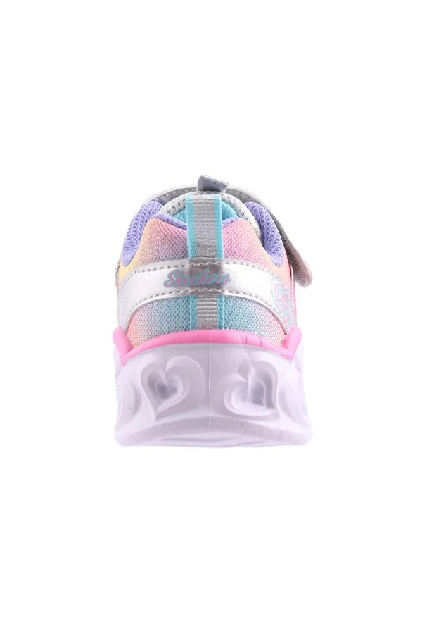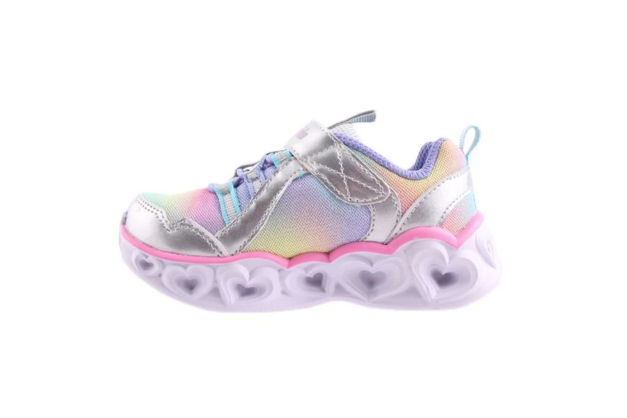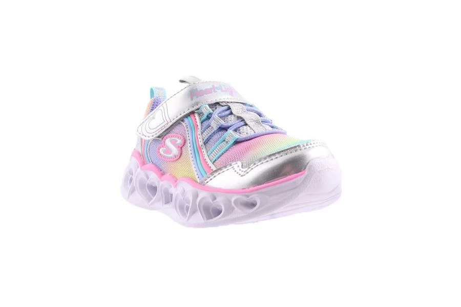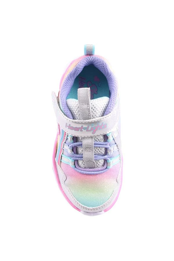 HL Rainbow Lux by Skechers is a infants sneaker that features a light-up side panel, elastic bungee laces and velcro strap.