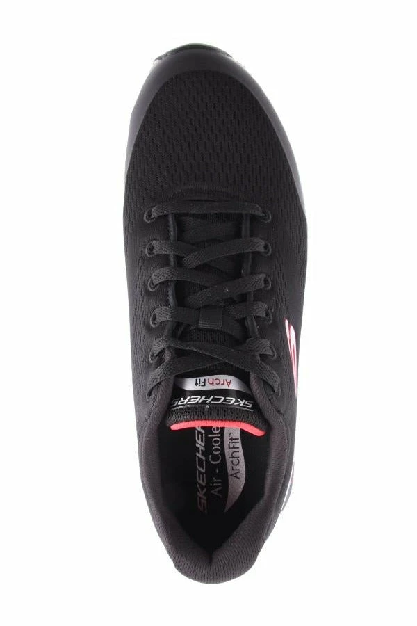 Arch Fit by Skechers is a men’s lace up sneaker featuring a knit mesh upper with a padded collar and tongue plus a podiatrist certified arch support removable insole.
