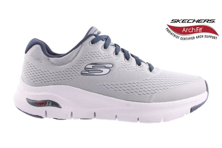 Arch Fit by Skechers is a men’s lace up sneaker featuring a knit mesh upper with a padded collar and tongue plus a podiatrist certified arch support removable insole.