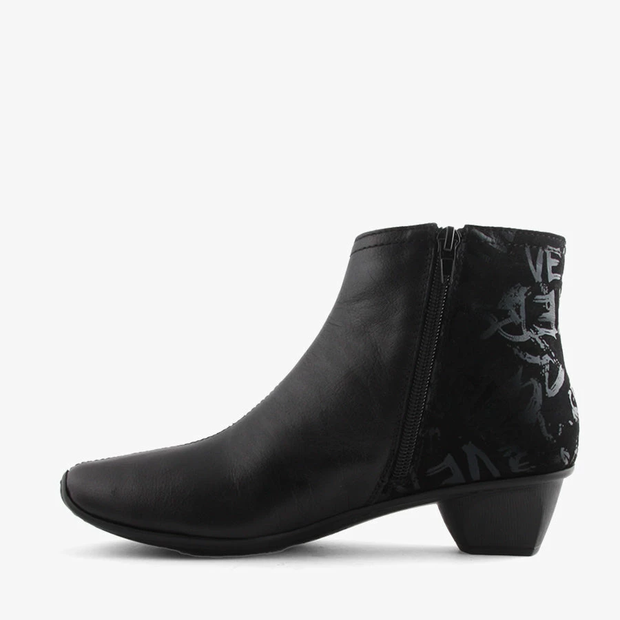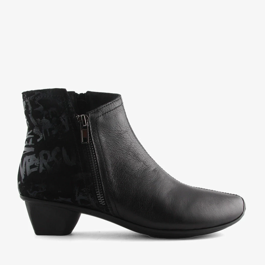 Stag by Stegmann is a women’s ankle boot featuring a soft leather upper with dual side zippers, graffiti back panel and a comfy lightly padded insole.