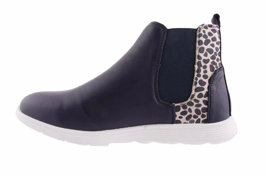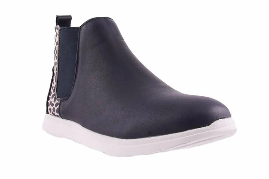 Jaded by Stegman is a woman’s elastic sided boot that features a soft leather upper, padded removable insole and a standout panel of animal print on the heel.