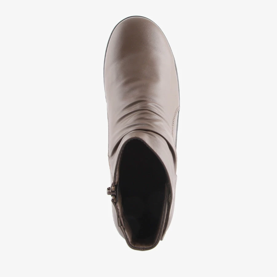 Find your laid back style in Saturn by Step on Air. These simple ankle boots feature a zip and adjustable Velcro section with cushioned innersole for an easy and comfortable wear.