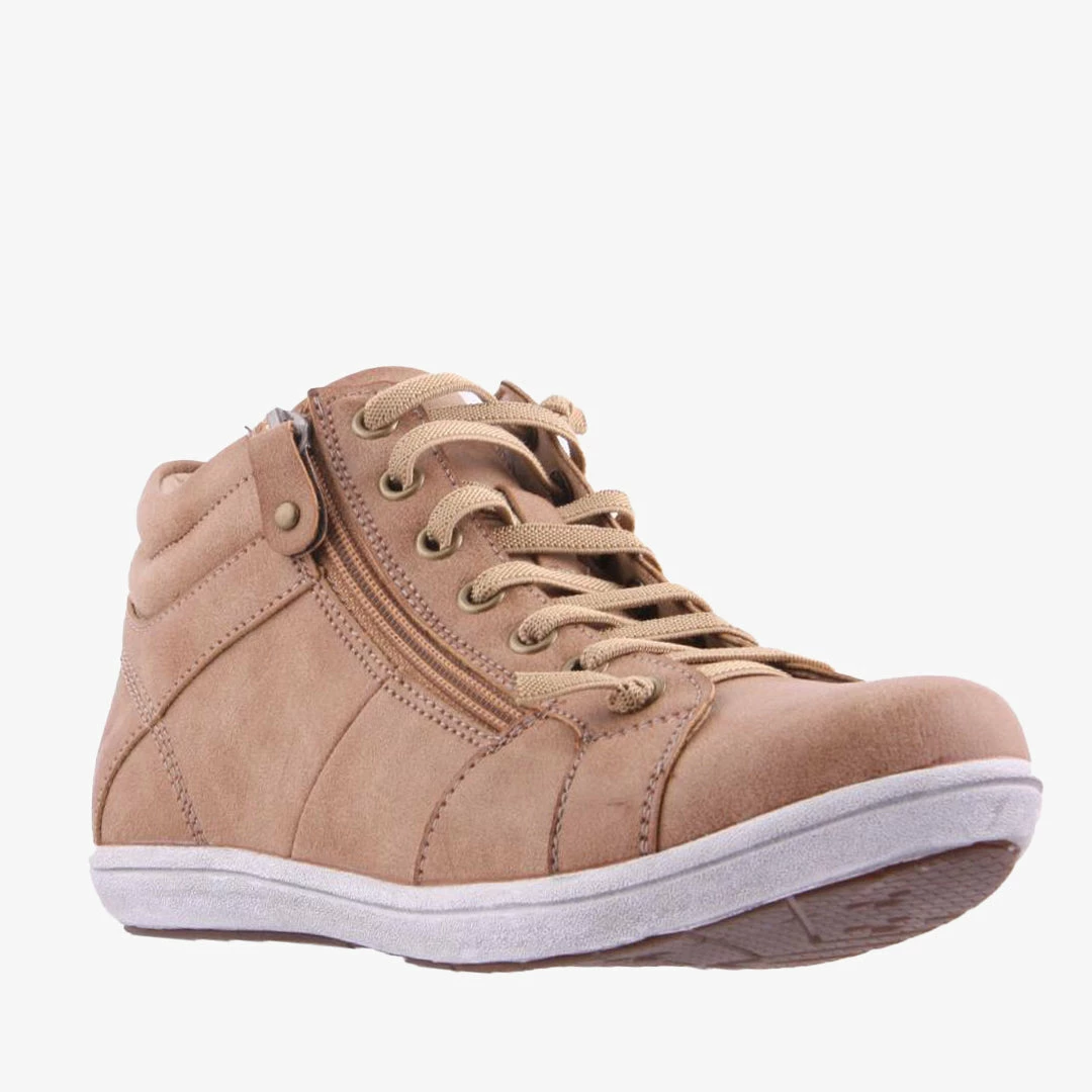 Zorro by Step on Air is a women’s sneaker boot featuring a stretch lace upper with a side zipper and removable padded leather lined insole.