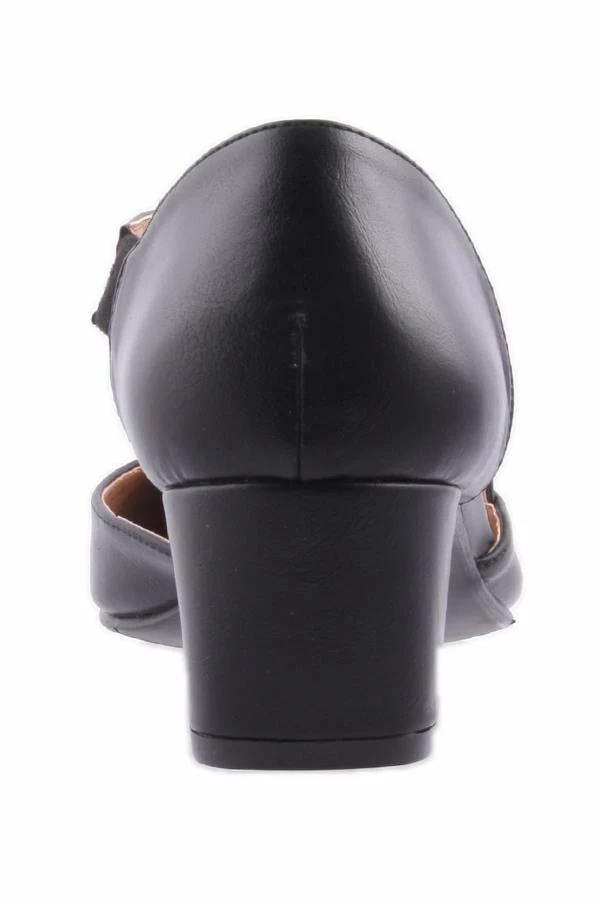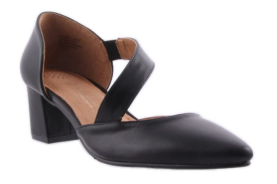 Look stylish and feel comfortable with Office by Step On Air. This block heel has a closed toe, padded insole and a cross strap feature.