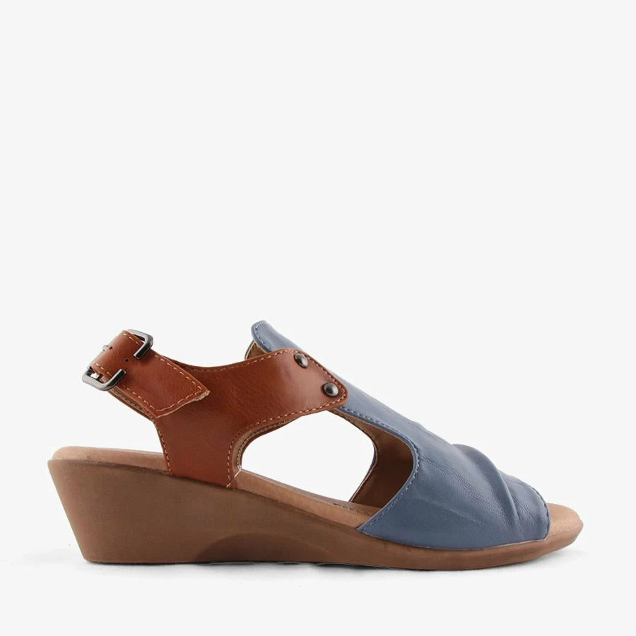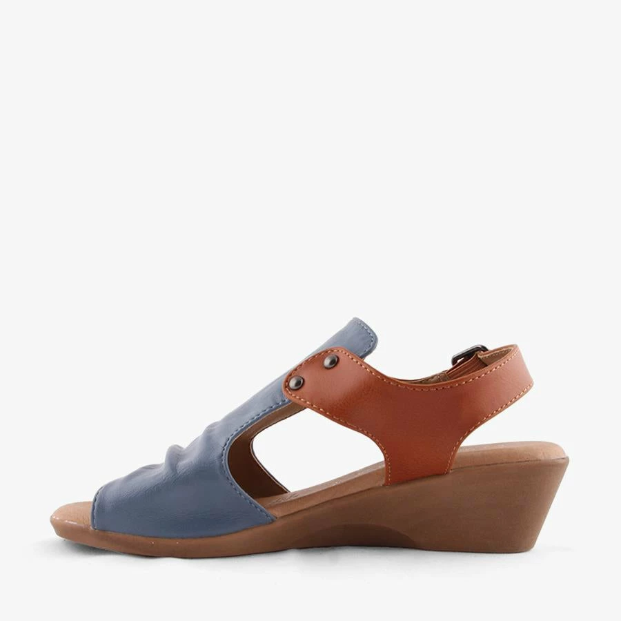 Dolcop by Step On Air is a women’s wedge sandal featuring a buckled slingback strap and a covered upper.