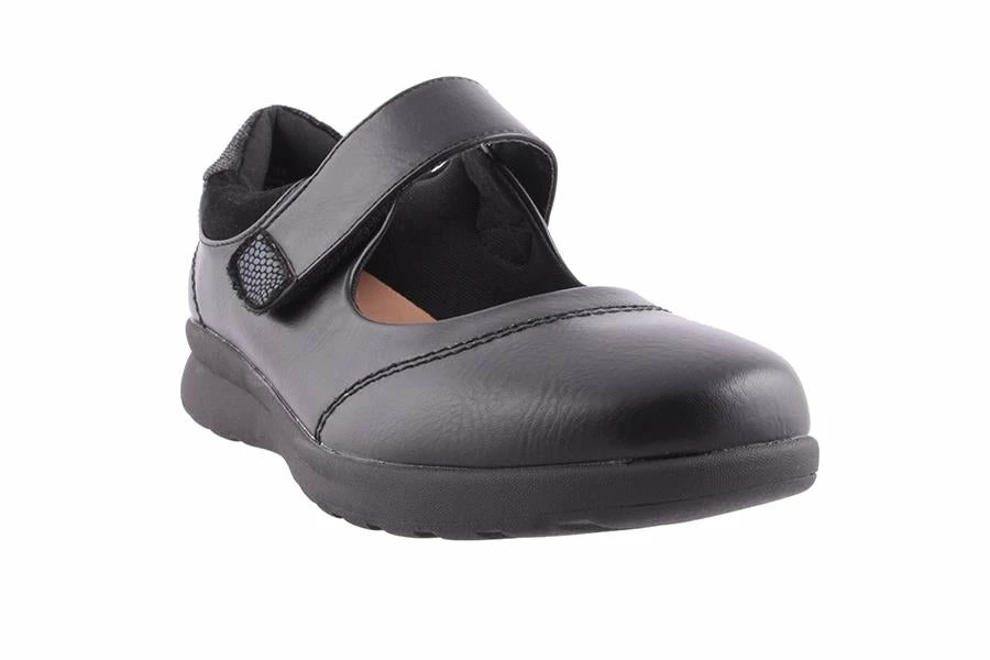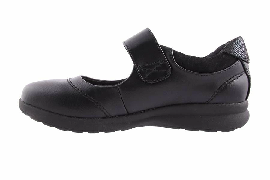 Laff by Step On Air is a woman’s comfort flat that features a padded leather insole, velcro strap and padded collar for extra comfort.