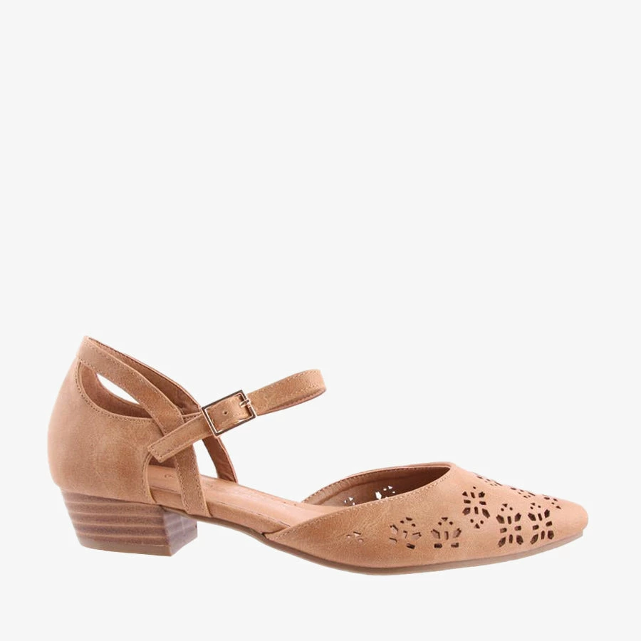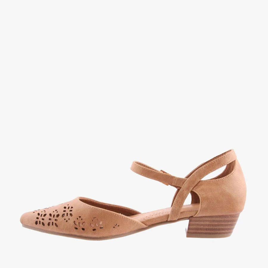 Everest by Step On Air is a simple and versatile woman’s shoe. Everest features a low block heel, buckled ankle strap and laser cut design on the upper.