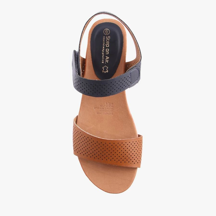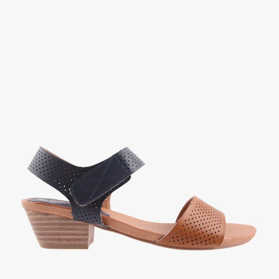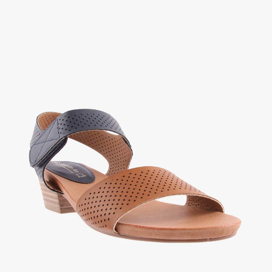 Nail by Step on Air is a women’s sandal that features a perforated design, velcro strap and stacked block heel.