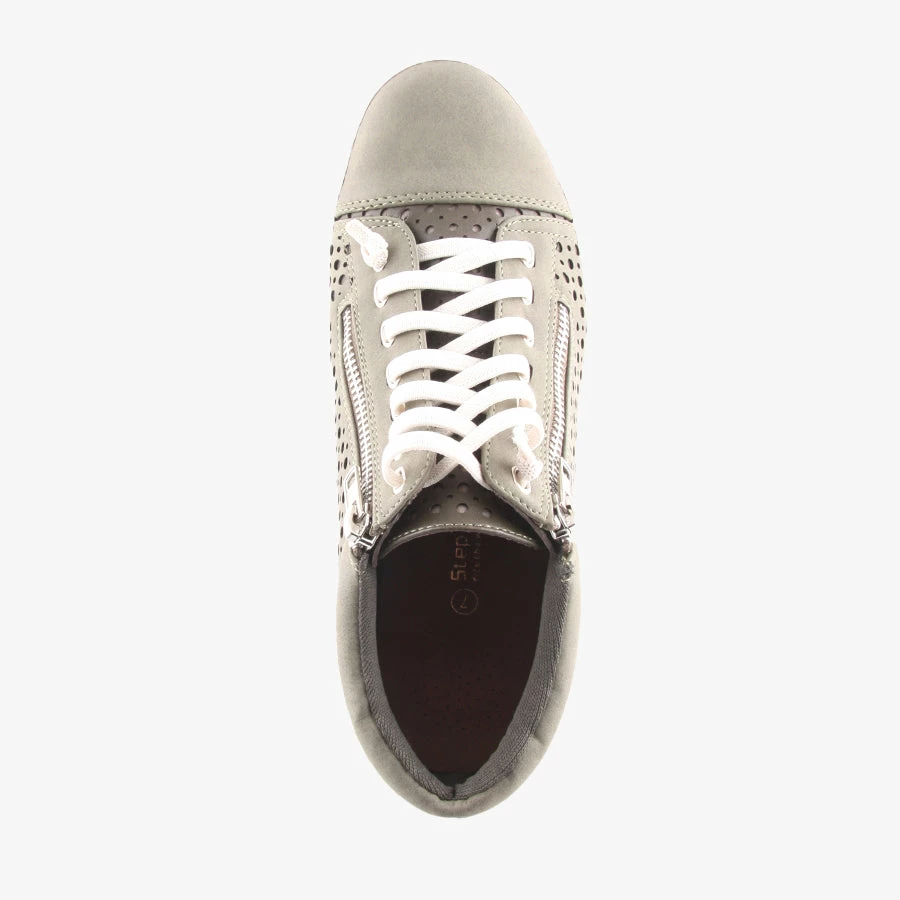 Mimi by Step On Air is a women’s sneaker boot featuring a lace up front with side zipper finished with a contrast heel. Mimi also features a padded removable insole.