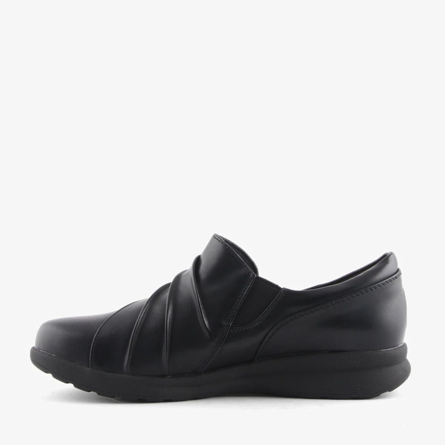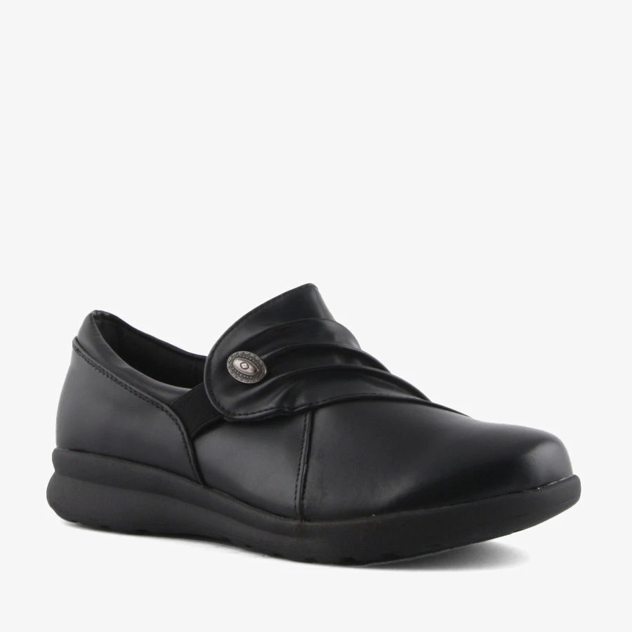 Lafter by Step On Air is a women’s comfort shoe that features a smooth leather-look upper, padded removable insole and elastic gussets for easy wear.