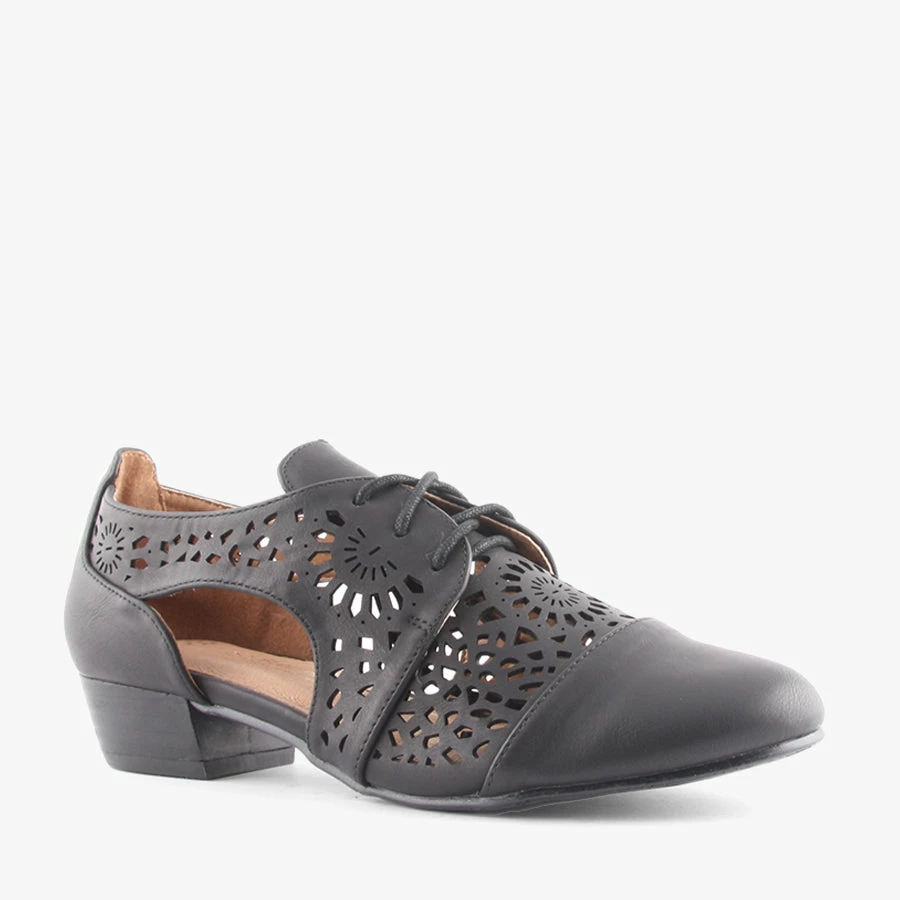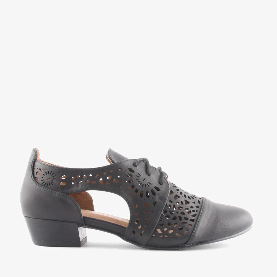 Linda by Step On Air is a lace up style with side cut outs and an intricate laser-cut upper. Linda features a low block heel and comfort footbed.