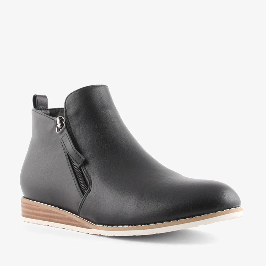 PeggyΒ by Step On Air is a women’s elegant and comfortable ankle boot. Featuring double usable zippers and a modest wedge.