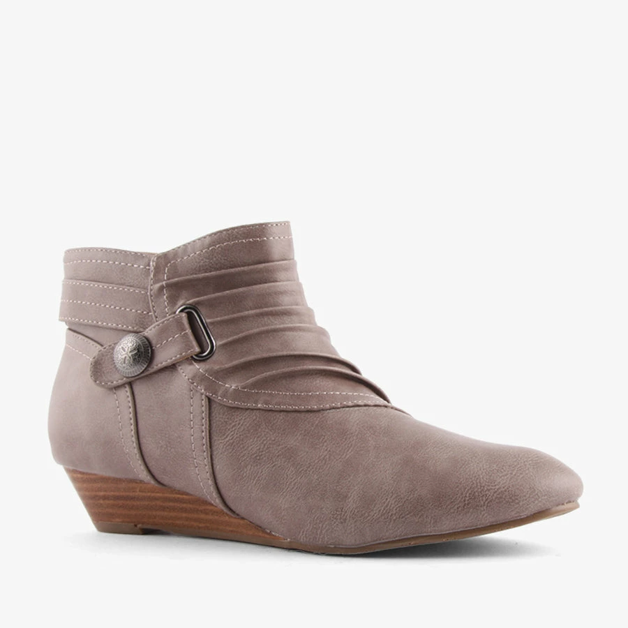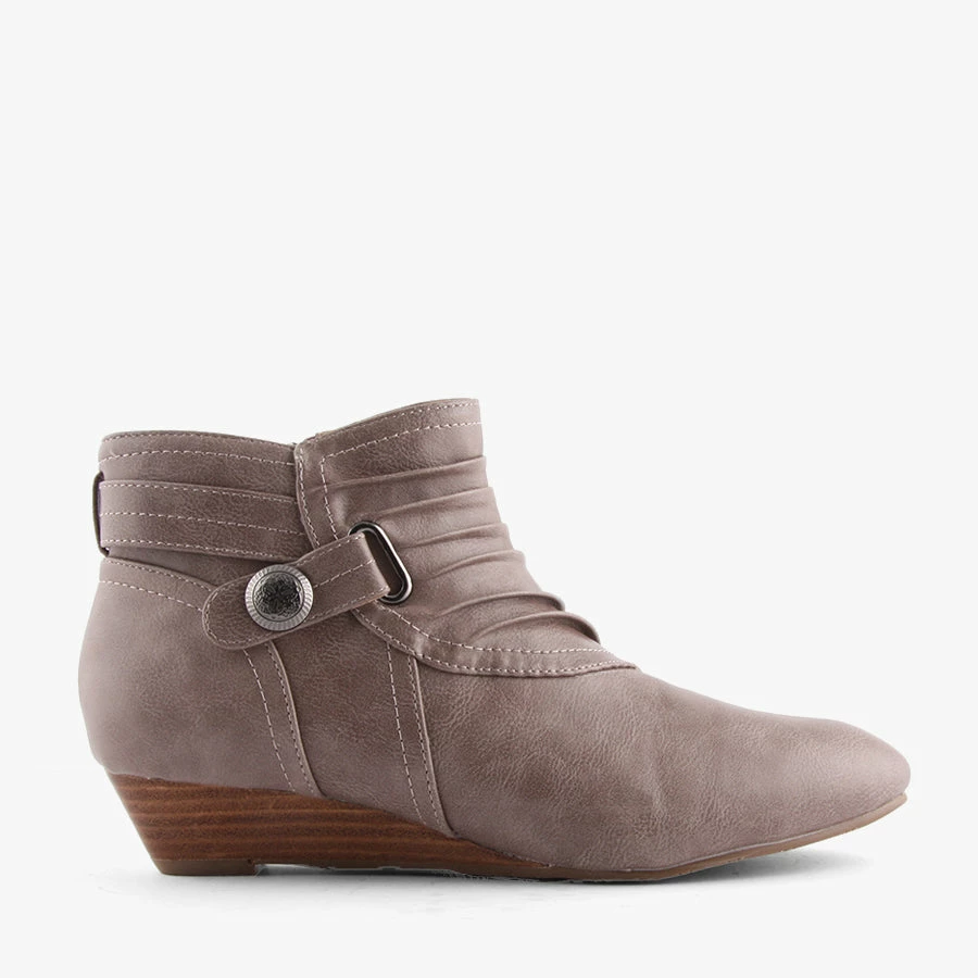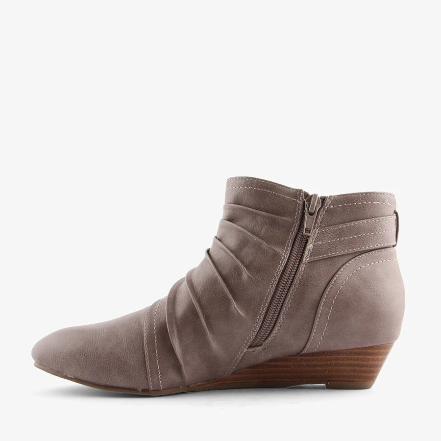 Paula by Step On Air is a women’s ankle boot that features a smart low wedge, ruche details on the front and a side zip for easy wear.