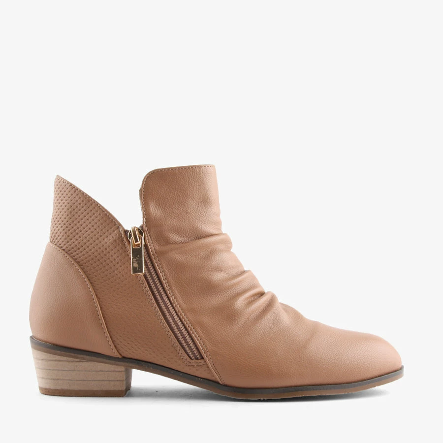 Craven by Step On Air is a woman’s ankle boot that features a low heel, textured panel and dual zips for easy wear.
