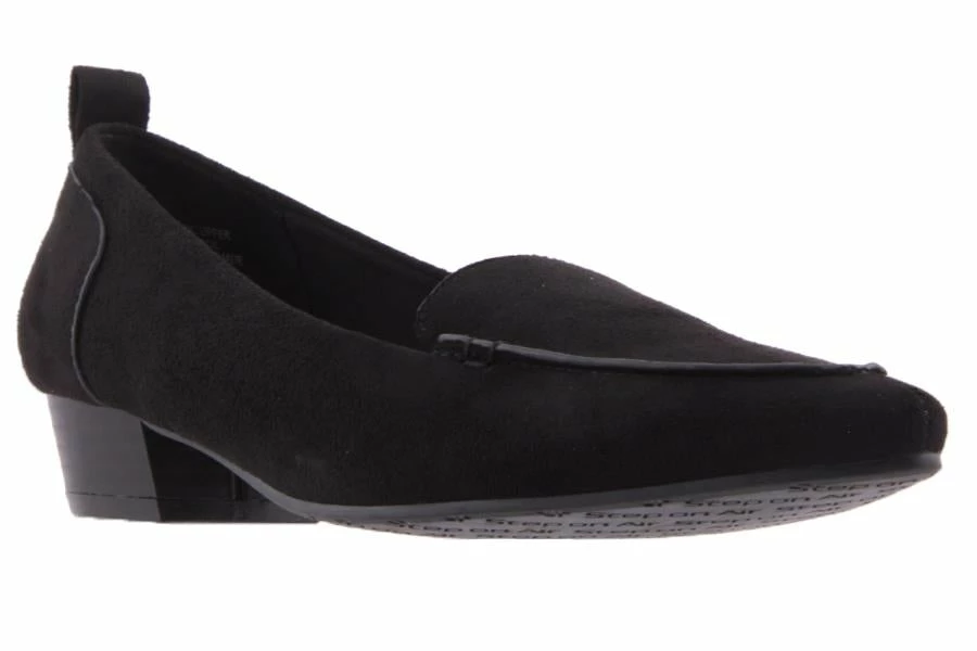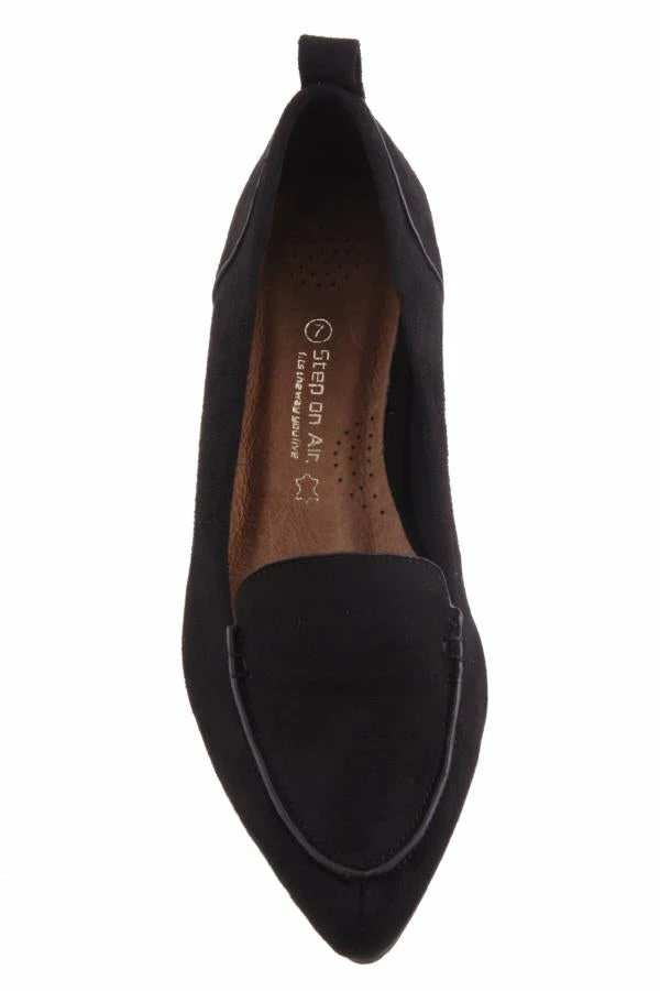 Esteem by Step on Air is a women’s low heeled loafer featuring a microsuede upper with a pointed toe and leather lined insole.