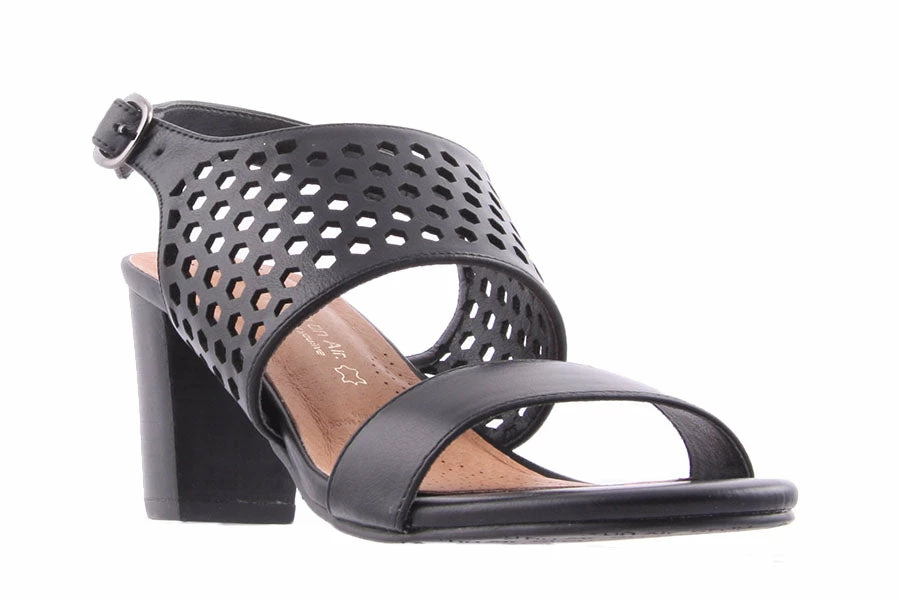 Aleesha by Step on Air is a women’s heel featuring a wide cut out strap with a buckled closure and lightly padded insole on a mid block heel.