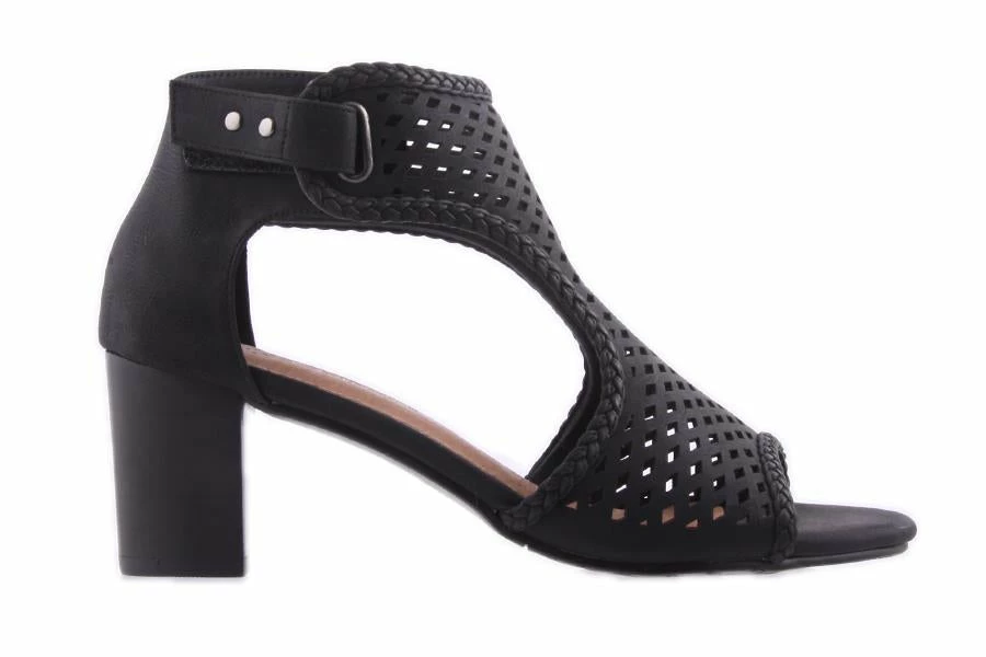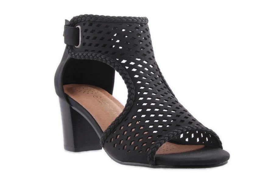 Dress up with Angela by Step on Air. This women’s block heel features a laser cut upper with a velcro strap closure and padded insole.