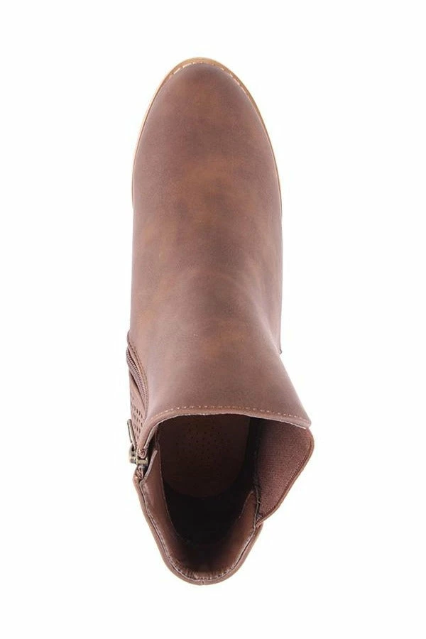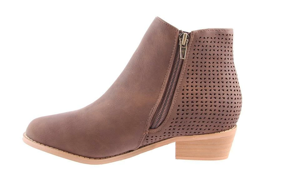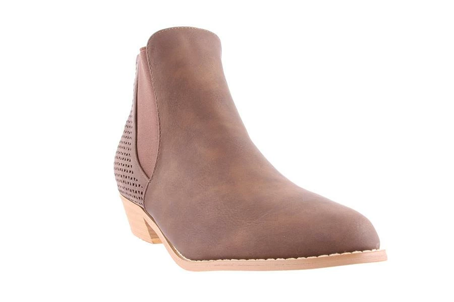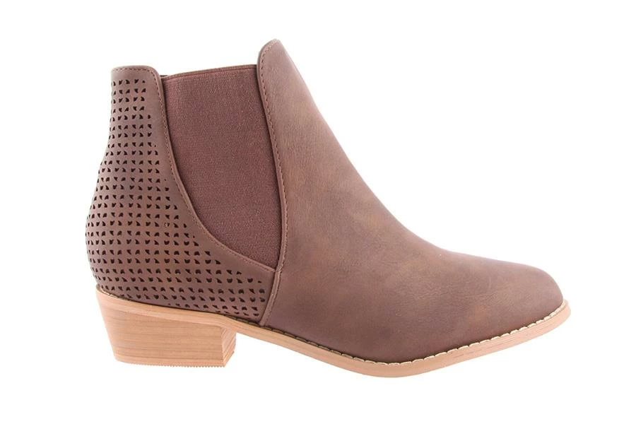 Sideling by Step On Air is a woman’s ankle boot that features an elastic gusset with inside zip, low stacked heel and laser cut design on the heel.