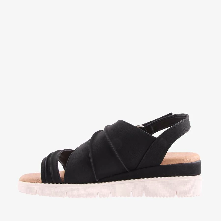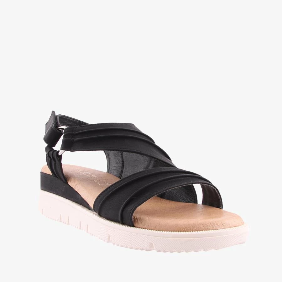 Tracks by Step On Air is where casual meets comfort. This sensible wedge features a beautiful pleated design and velcro fastening strap and a padded leather insole.