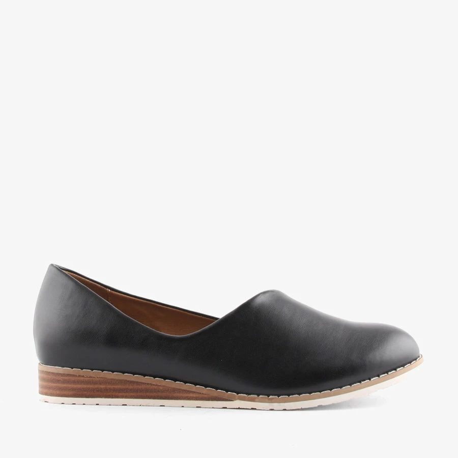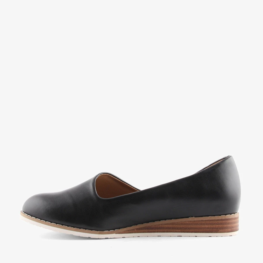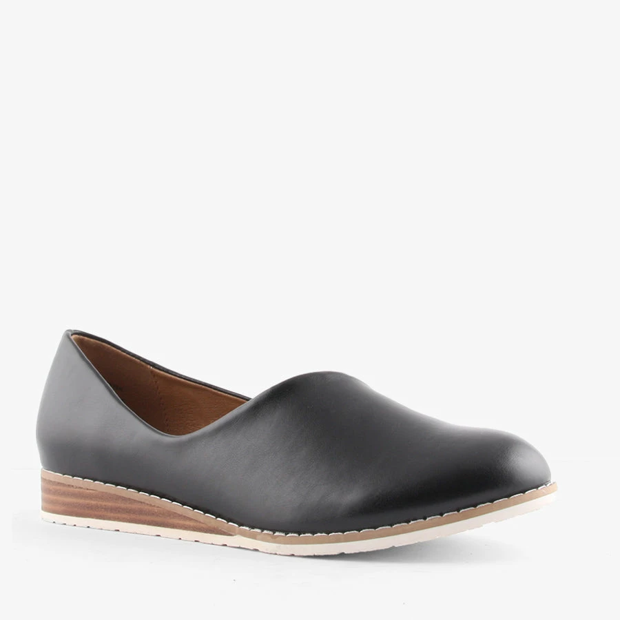 Bunty by Step on Air is a flat comfort women’s shoe that is stylish and versatile. Featuring a super soft upper and an 8mm latex comfort footbed and a low wedge heel. Bunty is versatile and can be paired with pants and dresses.