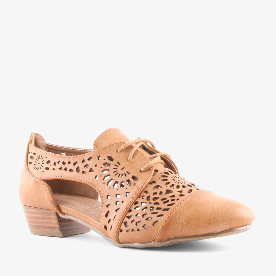 Linda by Step On Air is a lace up style with side cut outs and an intricate laser-cut upper. Linda features a low block heel and comfort footbed.