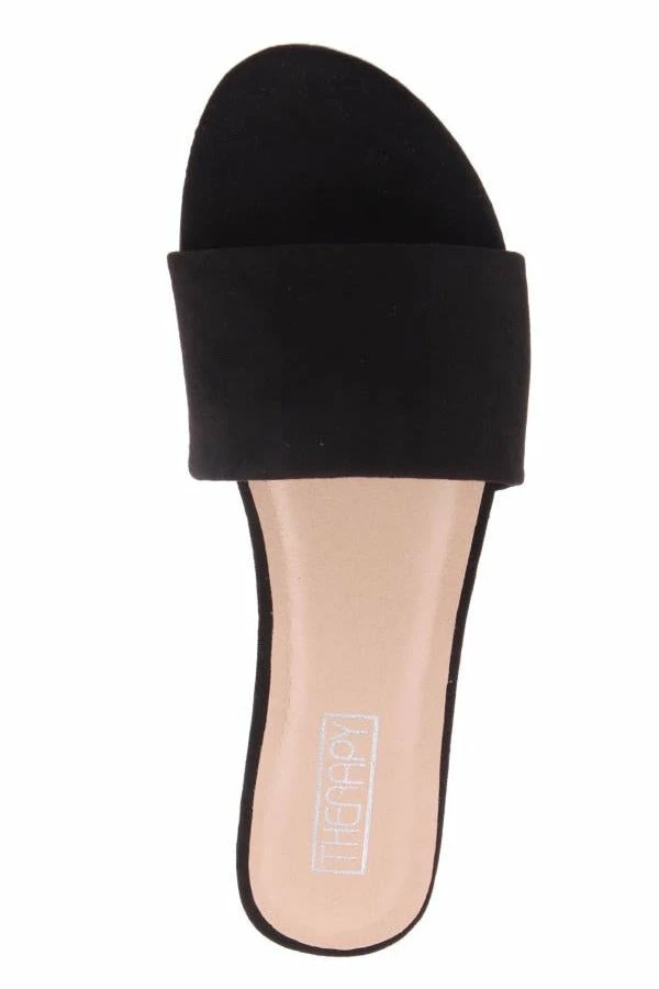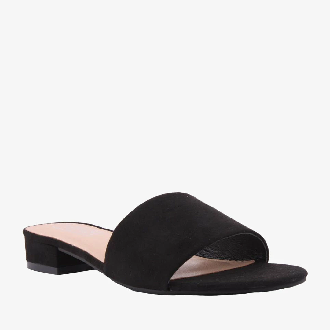 Slide into Maise by Therapy. This women’s sandal features a microsuede upper with a lightly padded insole and slight heel.