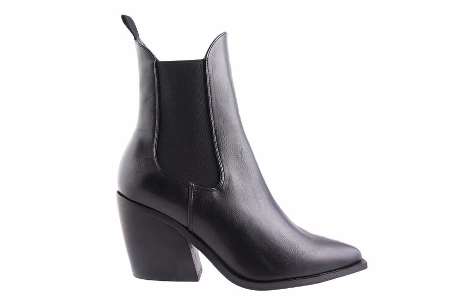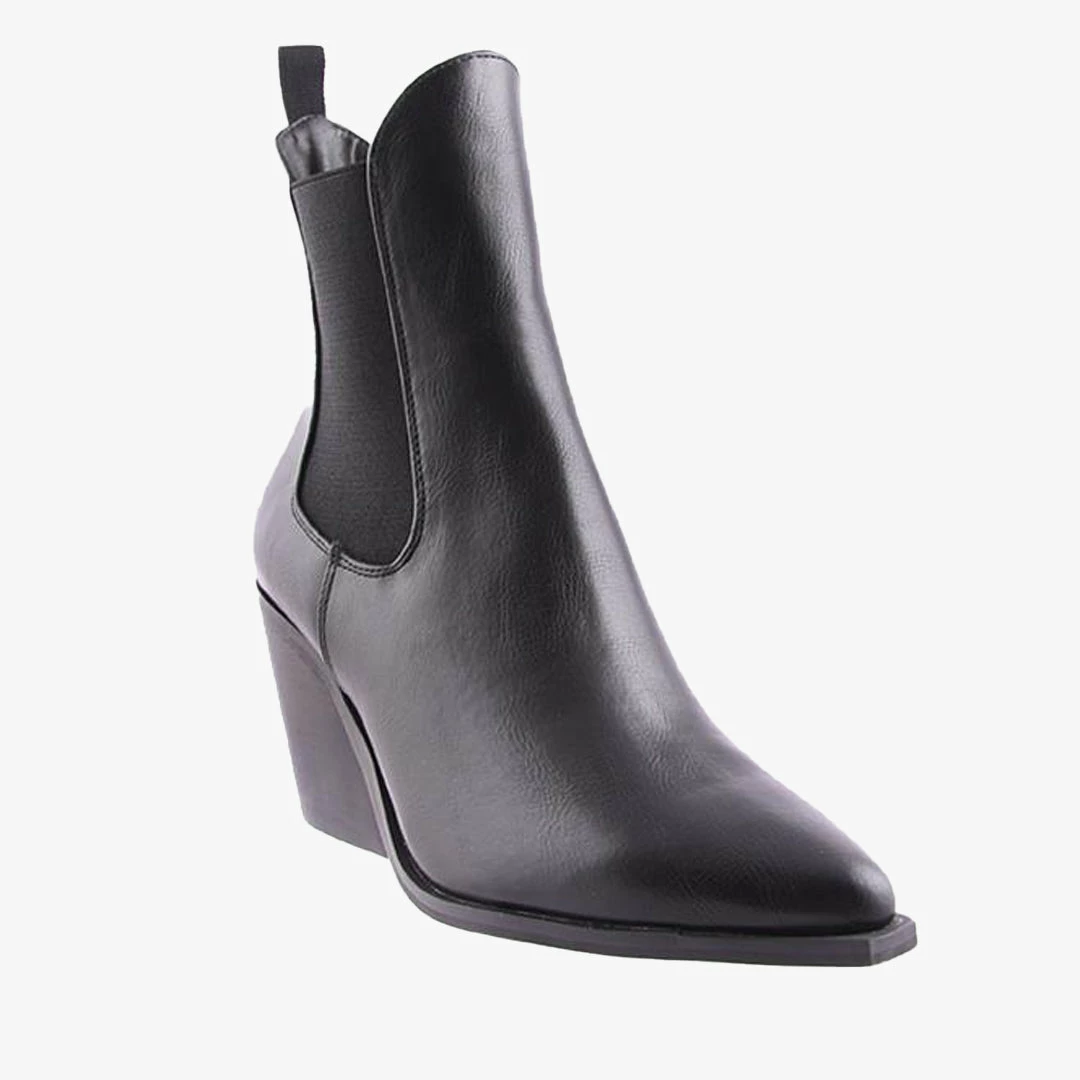 Josette by Therapy is a woman’s elastic sided boot that sits high on the ankle. Josette features a statement flared stacked block heel and pointed toe.