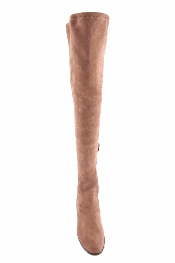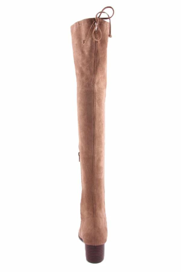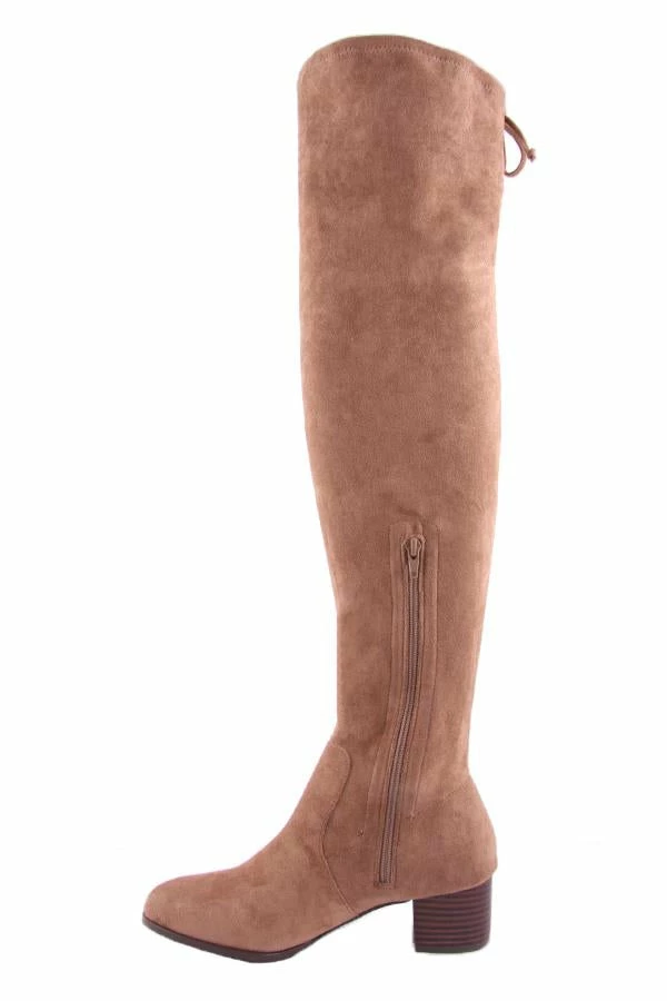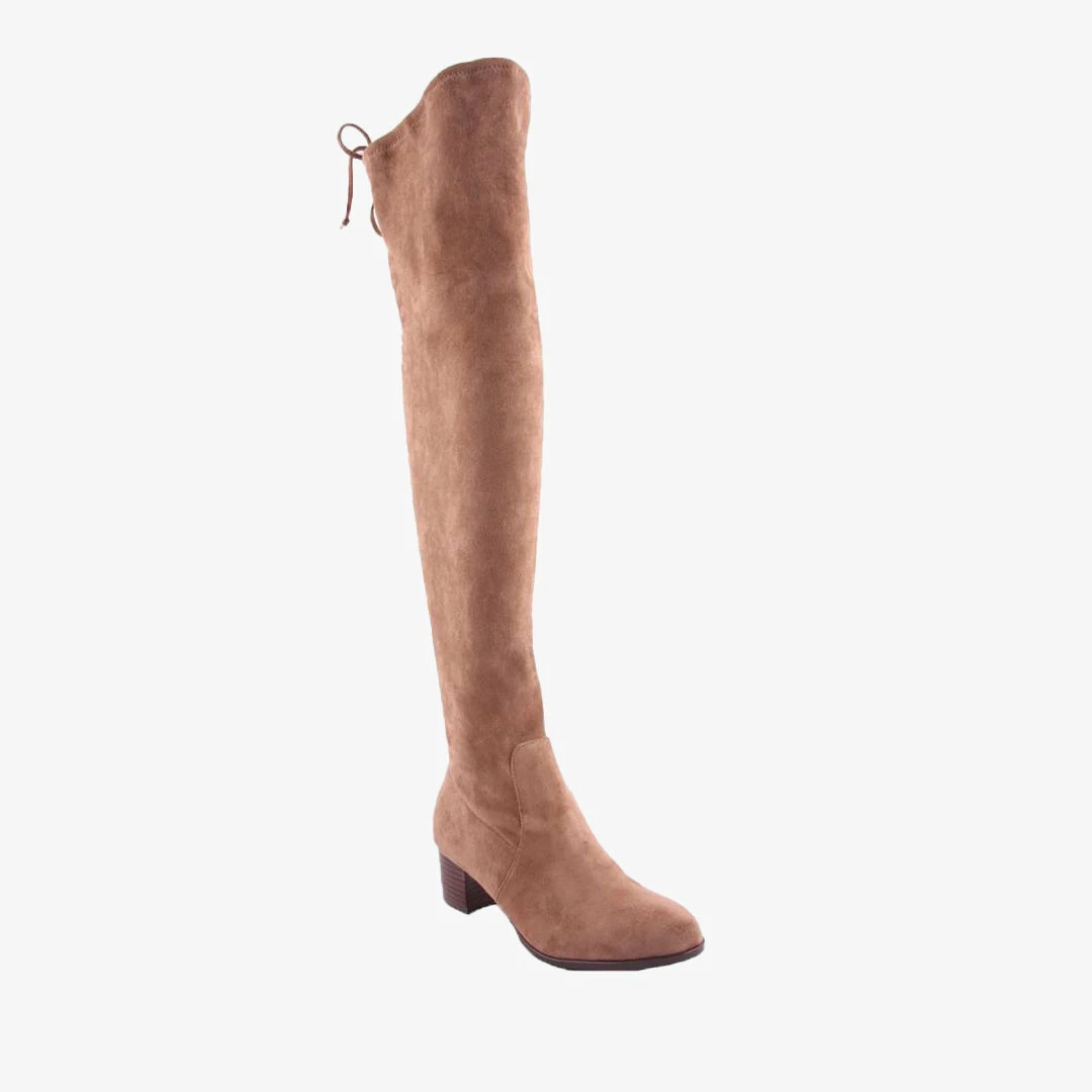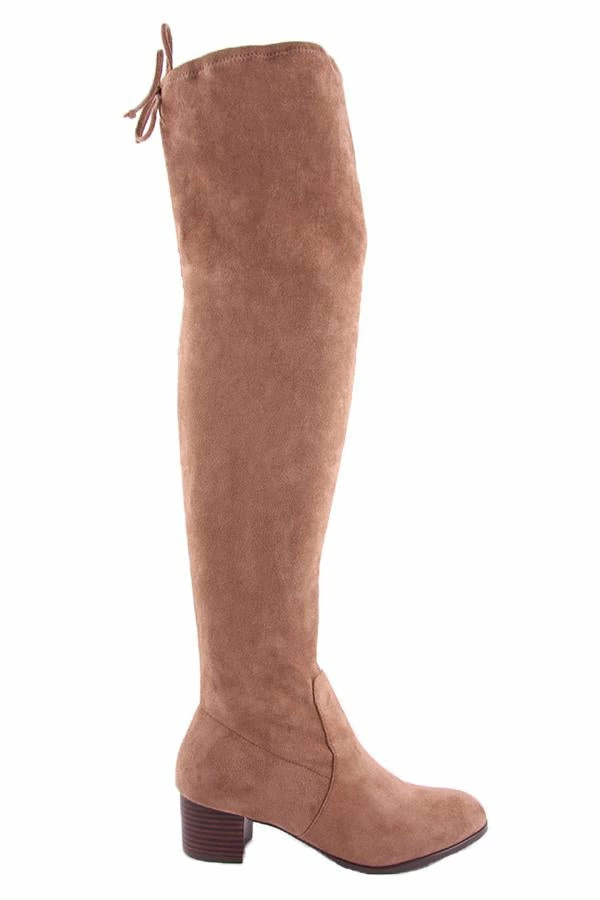 Shrew by Therapy is a woman’s knee high boot that features a stacked block heel, microsuede upper and ties on the back of both legs.