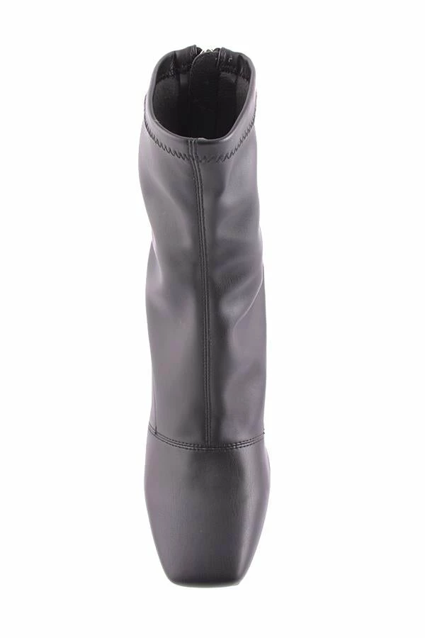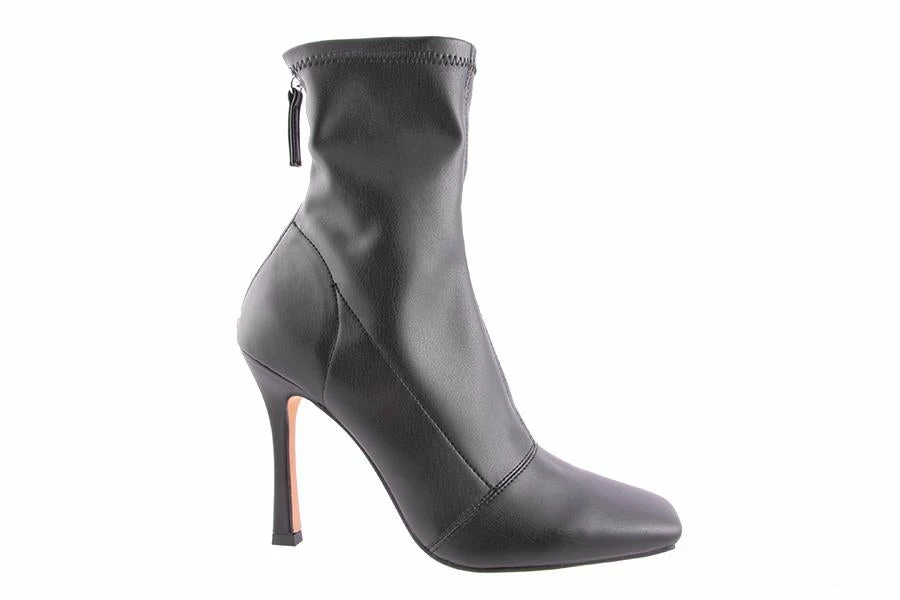 Yasmeen by Therapy is a woman’s boot that features a smooth leather look upper, stiletto heel and zip on the back.