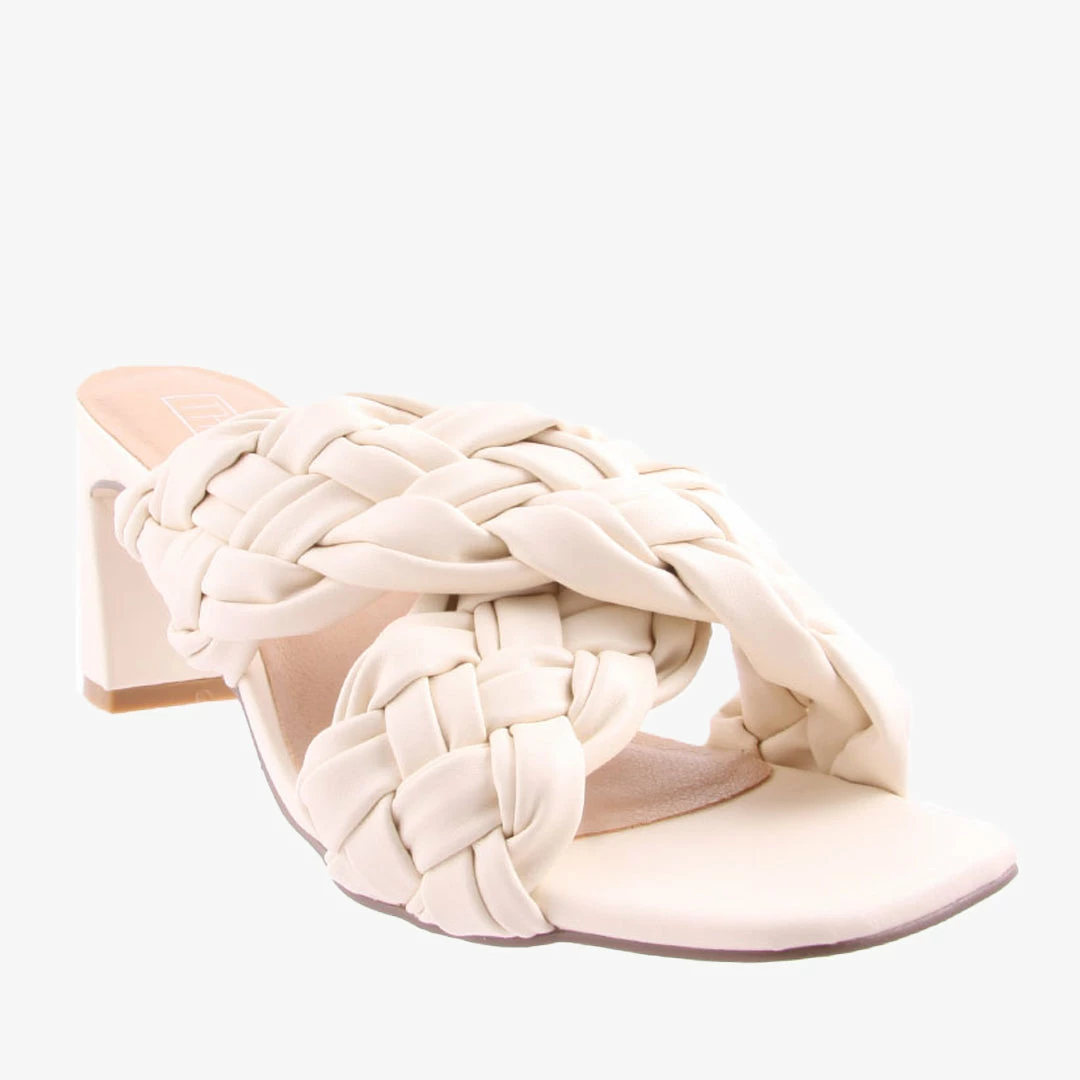 Lacey by Therapy is a backless women’s heel that features a chunky plaited cross strap design.