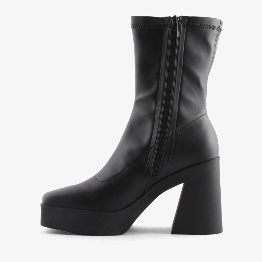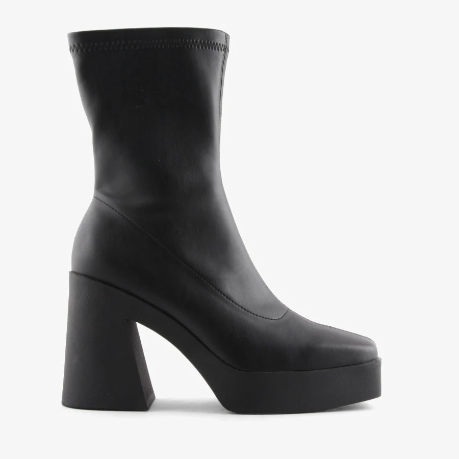 Jagger by Therapy is a woman’s boot that features a faux leather upper that moulds to the upper ankle, a square toe, and a platform block heel.
