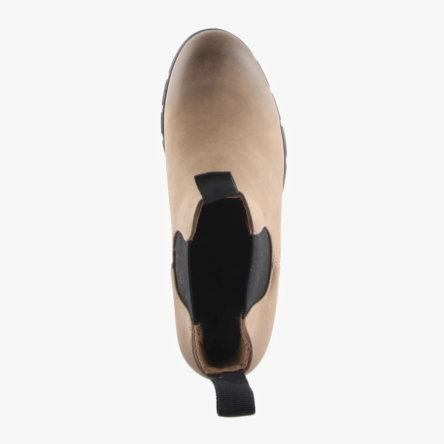 Find peace with Harmony by Therapy. This women’s elastic sided boot features a comfortable low heel, lightweight sole and leather-look upper.