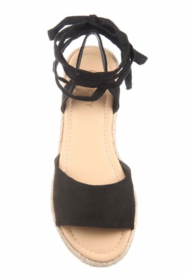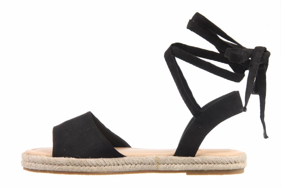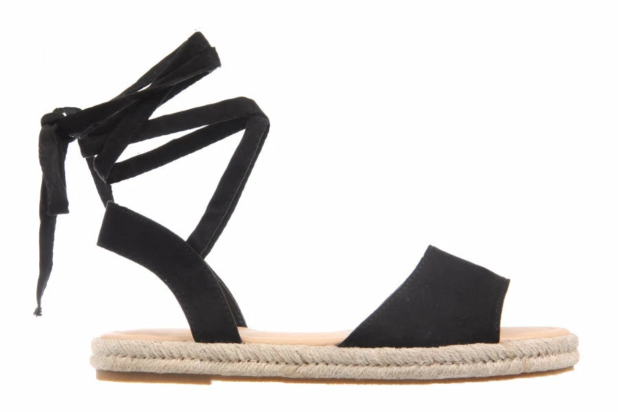 Get the espadrille look with Dauphin by Therapy. This women’s flat sandal features a soft microsuede upper with a tie up ankle strap in a casual easy to wear style.