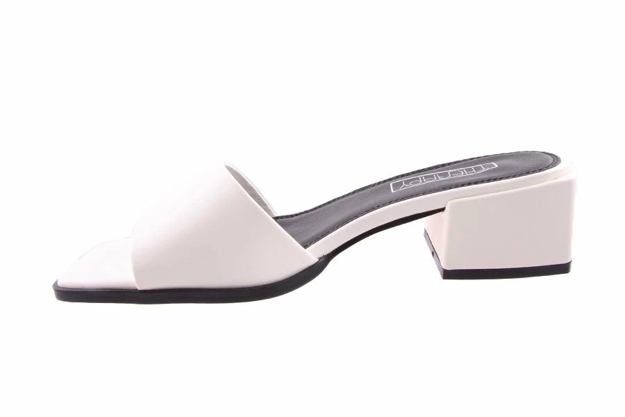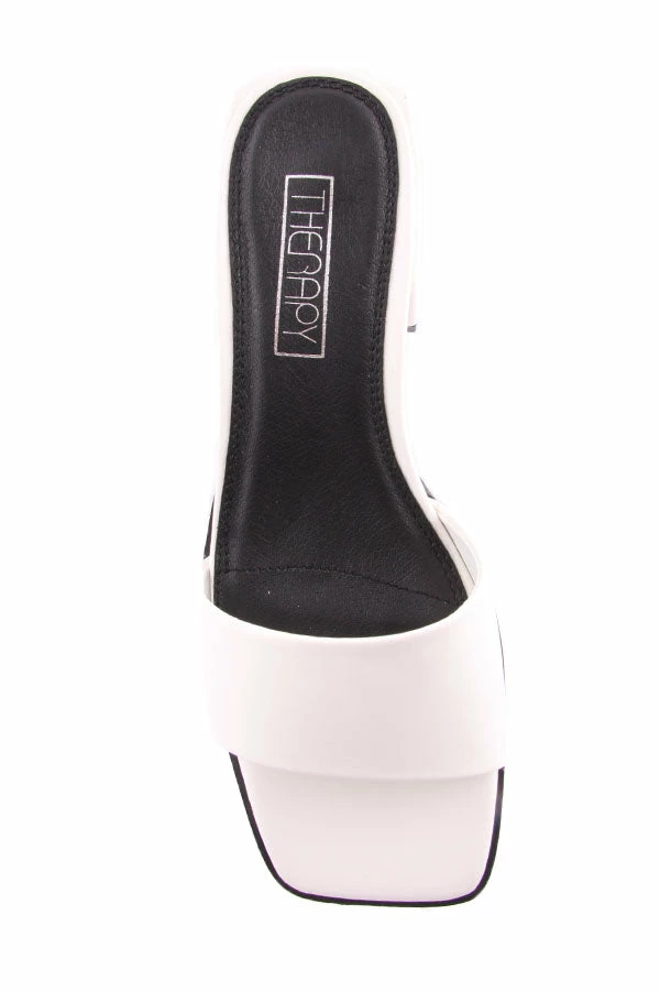 Slide into Stormi by Therapy. Stormi features a low block heal, square toe and a simple wide strap across the toe.