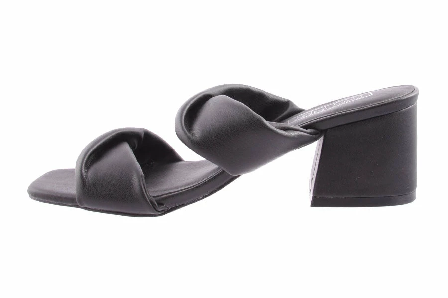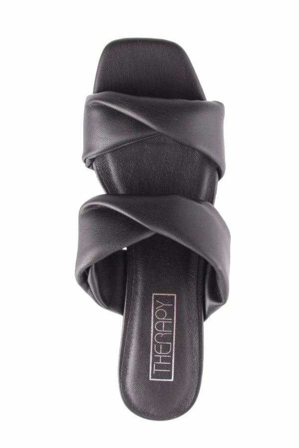 Serafina by Therapy is a simple backless women’s heel featuring a comfortable block heel and plush twisted strap design.
