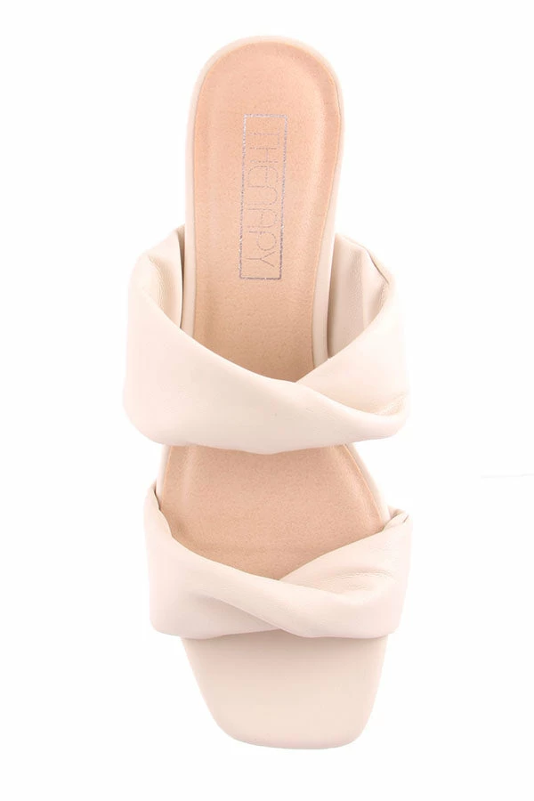Serafina by Therapy is a simple backless women’s heel featuring a comfortable block heel and plush twisted strap design.