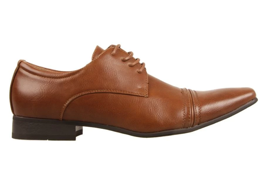 Bartell by Uncut is a pointed toe lace up dress shoe with a smooth upper featuring top stitching and piping across the shoe for extra detail.