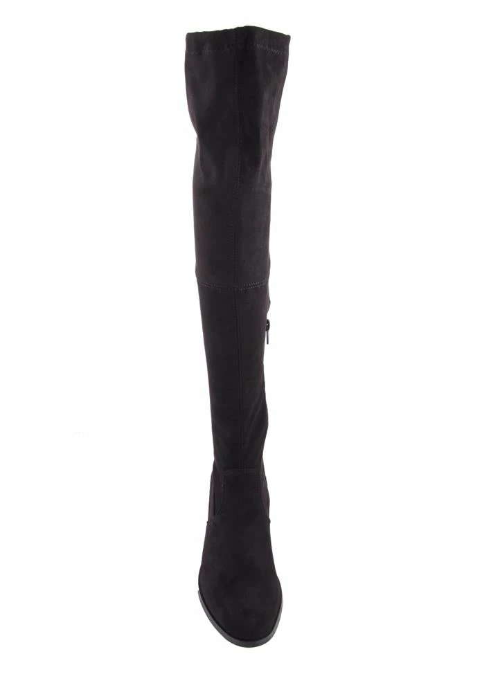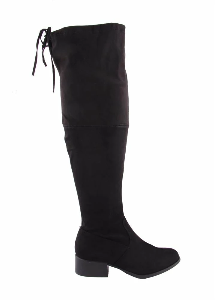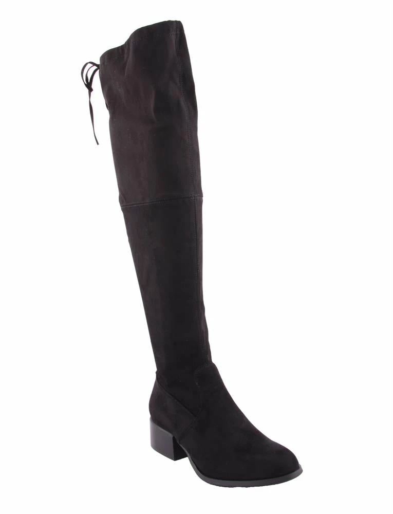Dido by Verali is a woman’s knee high boot that features a short stacked heel, microsuede upper, half length zipper and tie up strap around the top.