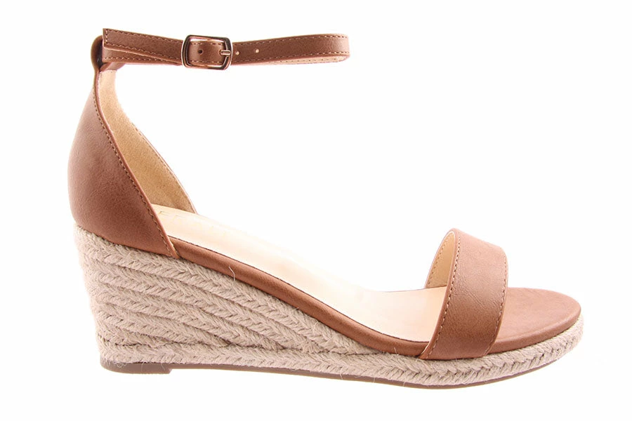 Bobbie By Verali is a women’s espadrille wedge featuring a single strap across the toes, a buckled ankle strap and an enclosed heel.
