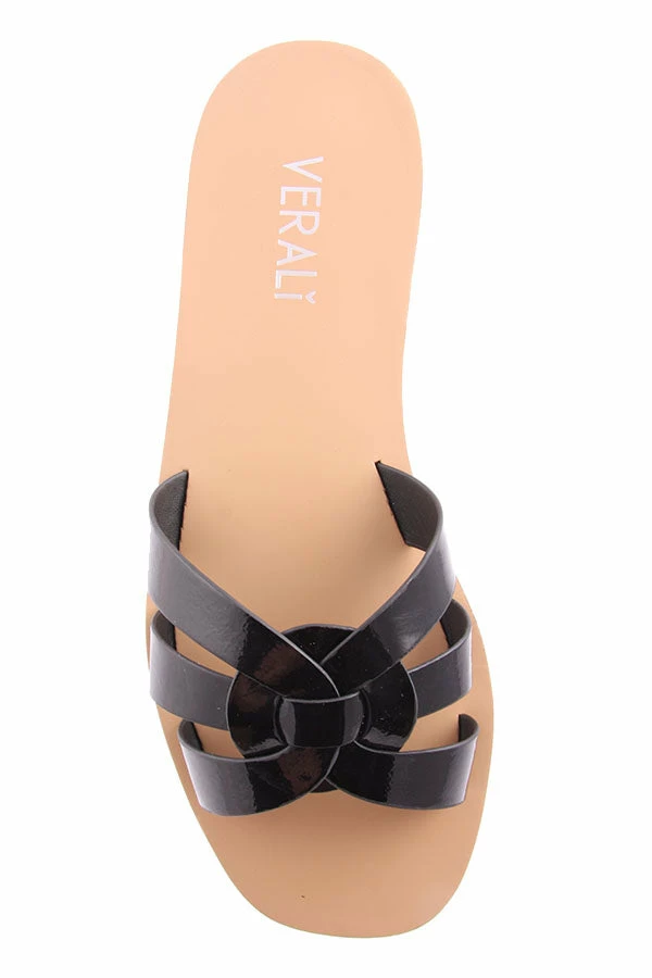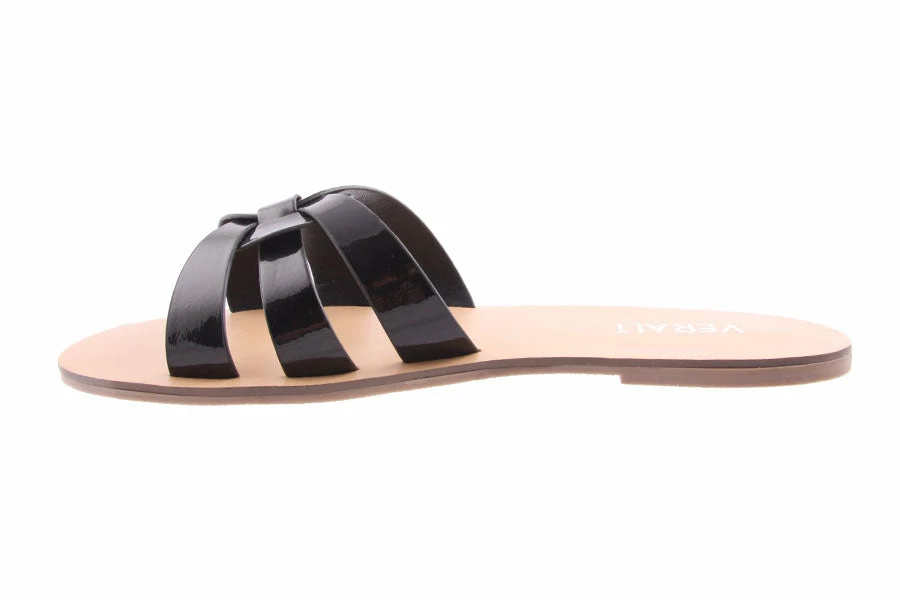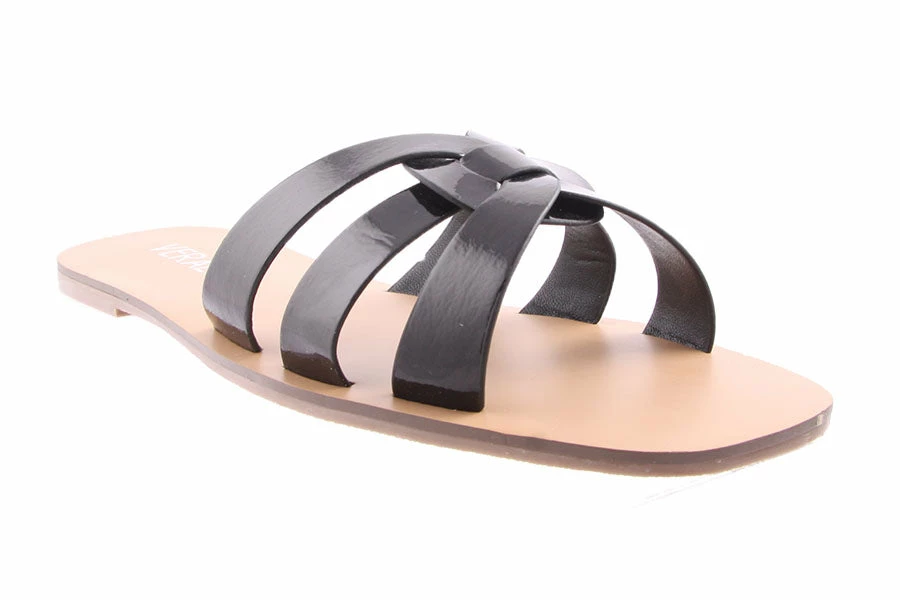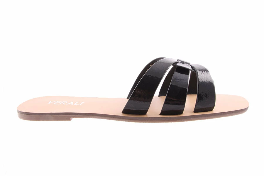 Roulette By Verali is the perfect dressy summer slide. Roulette features a flat sole with a flattering patent strappy upper.