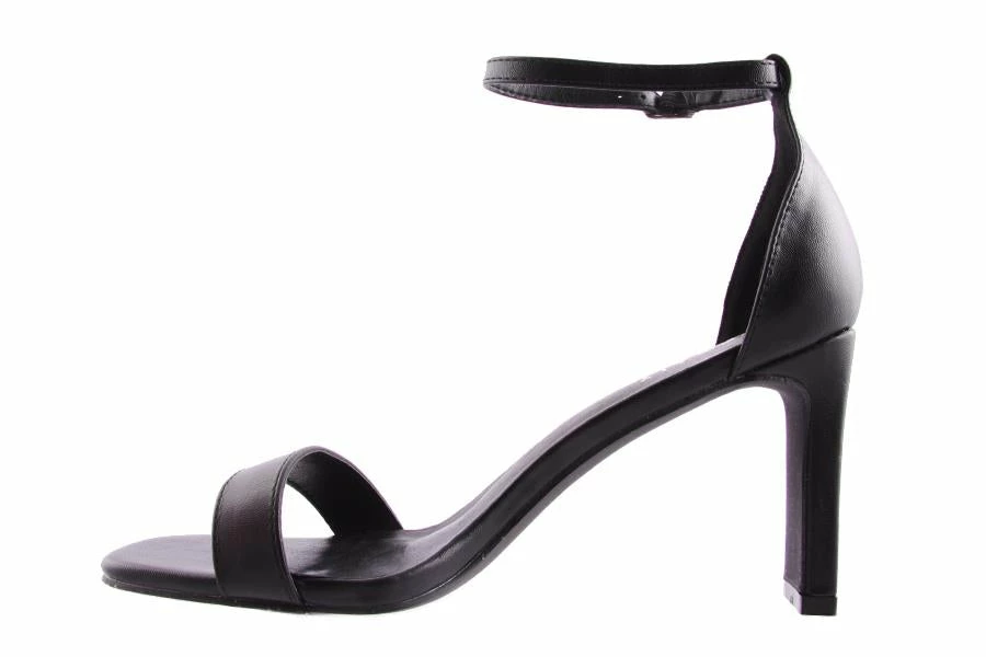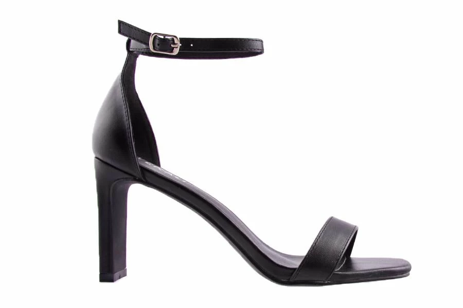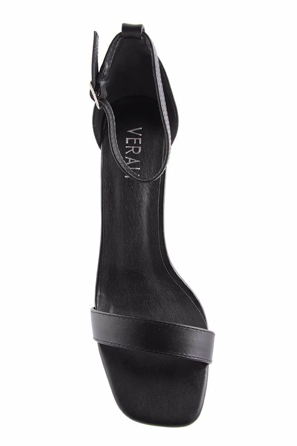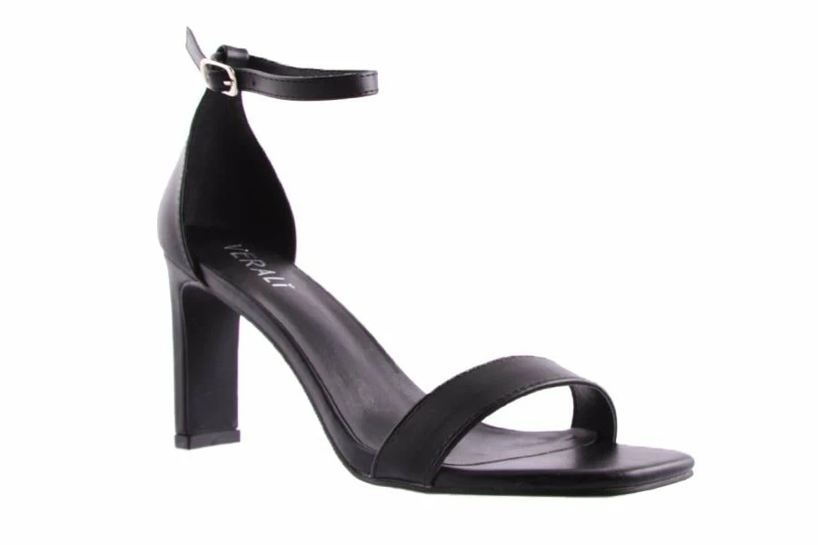 Kaleb by Verali is a classic open toed heel with ankle and toe straps, adjustable buckle fastening and thin wide back heel.
