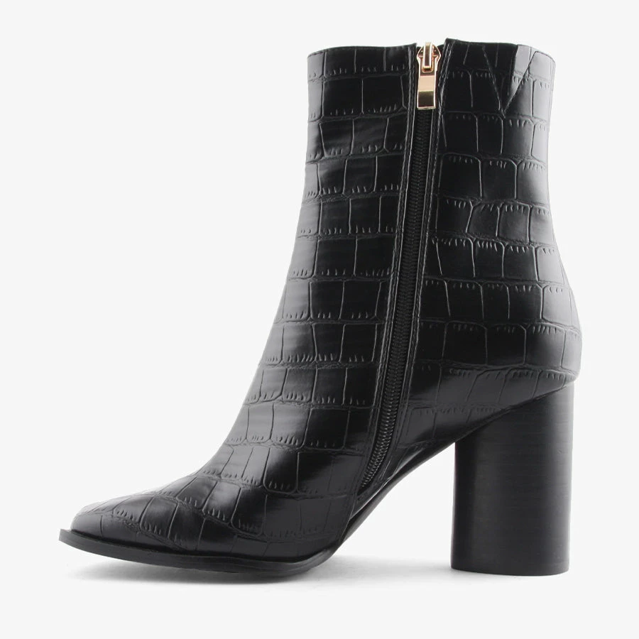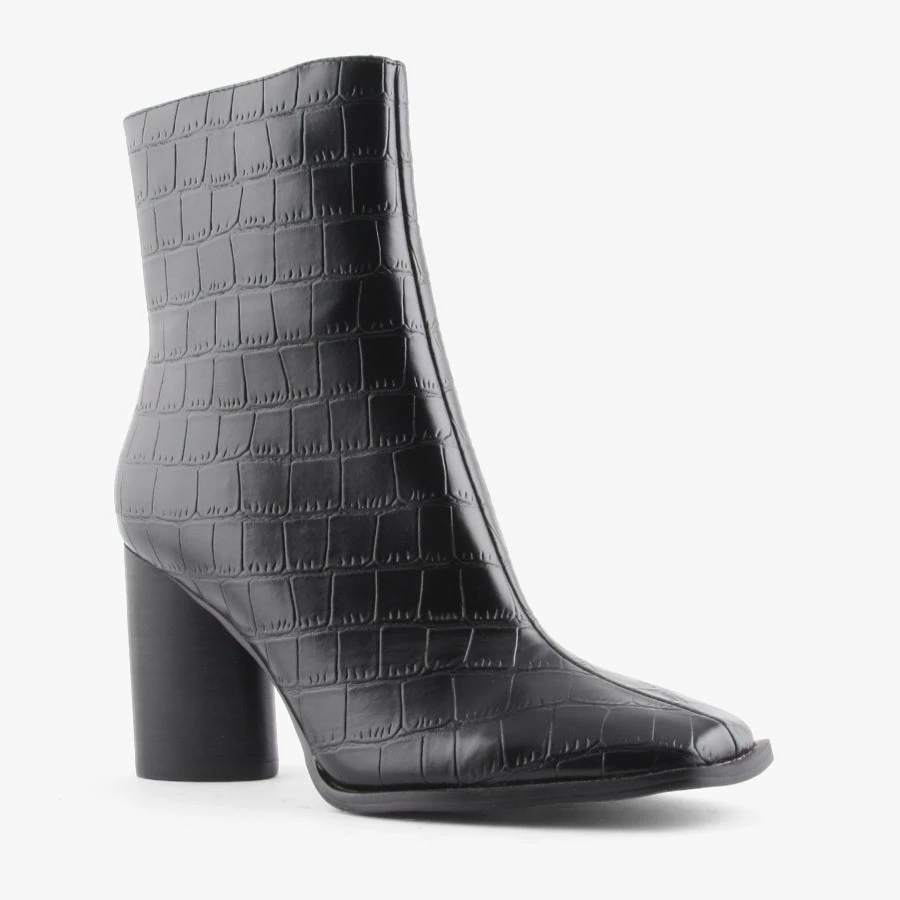 Wendell by Verali is a women’s dress boot that features a smart croc upper, square toe design, inner zip for easy wear and a rounded block heel.
