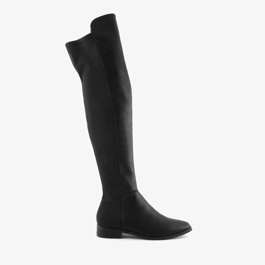 Get your long boot fix with Hugh by Verali. Hugh is a knee high design that features a comfortable flat sole, inside zip for easy wear and a stretch fabric panel at the back for a snug fit.