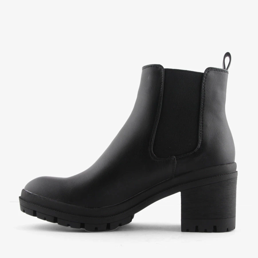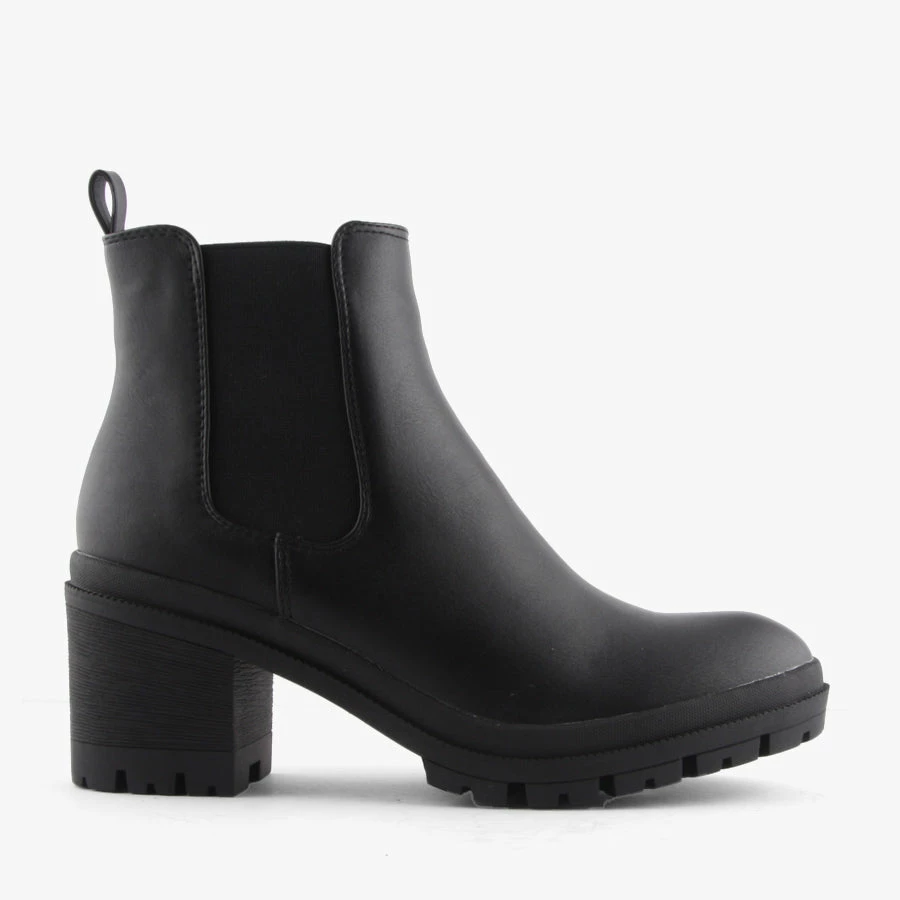 Stand out in Georgia by Verali. Georgia is an elastic sided boot that features a comfortable low chunky heel.