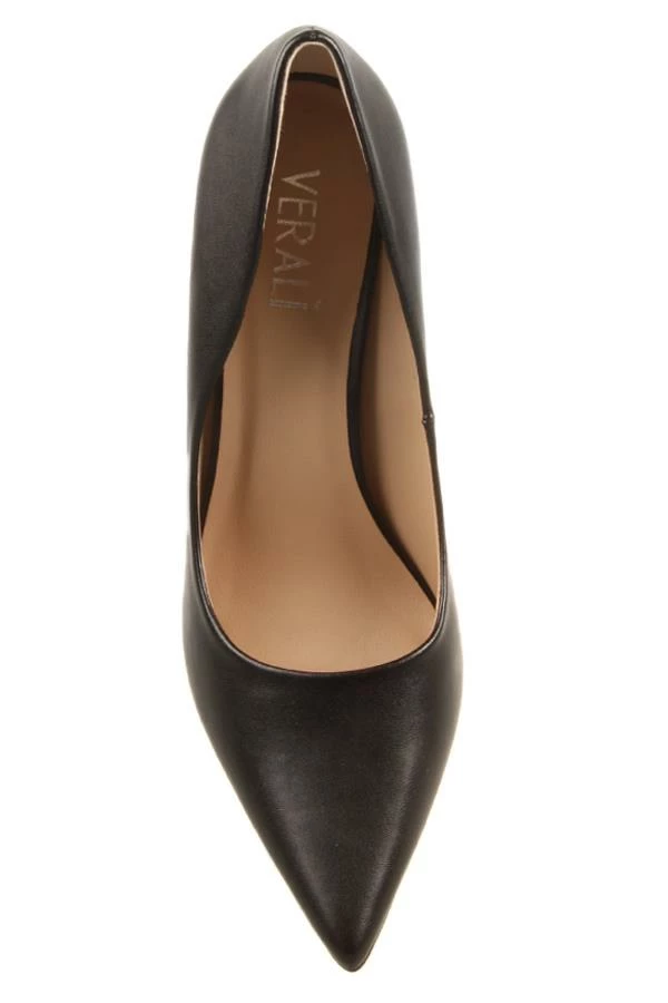 Harold by Verali is a pointed toe pump featuring a smooth upper and high stiletto heel.